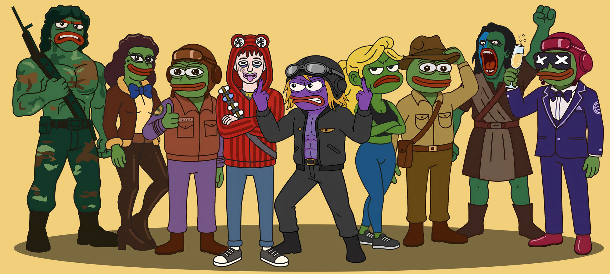 Now, he’s brought that same attitude to The Adventures of Sergeant Pepe, transforming Arsonic’s creation into a bold, cartoon-driven journey. His clean lines and fearless color palettes give Pepe’s origin story the punch it deserves...a mix of humor, rebellion, and digital nostalgia that feels straight out of the timeline.