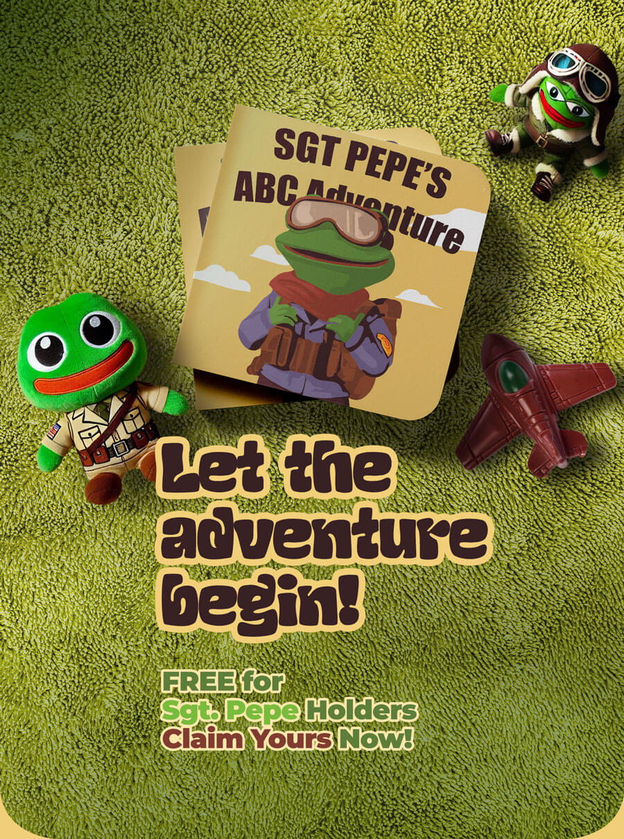 Sgt. Pepe isn’t just a Web3 legend, now he’s teaching the alphabet like a true degen commander. This fun, engaging, and collectible book takes you on a wild ride through the letters of the alphabet, packed with crypto, memes, and NFT culture fun.